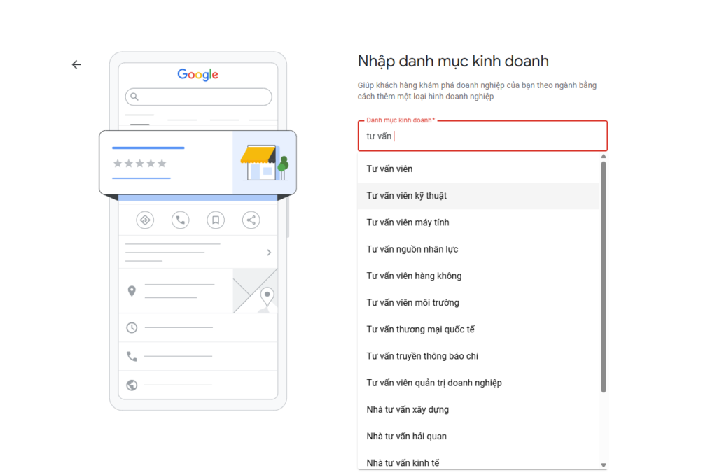 - Danh mục ngành nghề (primary category) phù hợp nhất.